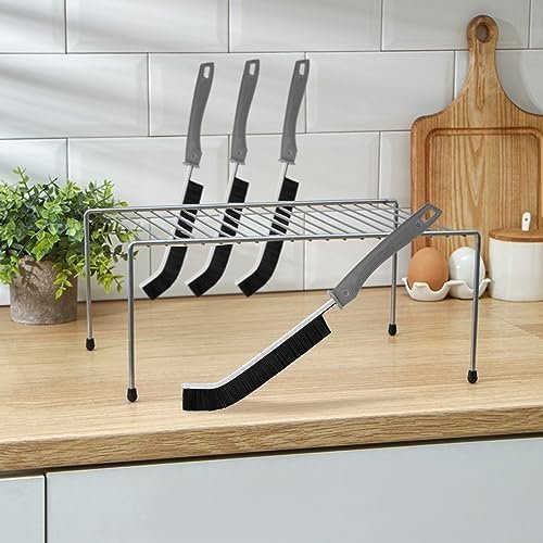 【ERGONOMIC】:The handle design of this hard-bristled crevice cleaning brush is ergonomic, non-slip and easy to hold. The curved brush handle fits the gap and goes deep into the groove, saving effort in use.