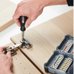 The Bosch Screwdriver Bit and Nutsetter Set is ideal for the trade professionals. It contains different lengths and types of extra-hard bits for various screw types as well as nutsetters, designed with a permanent magnet for hex screws. They have been constructed from S2 modified steel and have been heat treated to provide the bits with an extra hard quality. The bits have a tapered torsion zone that absorb the force and vibrations when screwdriving into all materials with hight torque. This set als features a compact hand screwdriver supplied in a robust, durable and handy storage box.