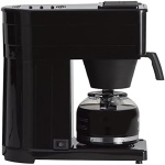 Exclusive drip-free carafe with a proprietary lid and spout design that arcs the pour of the coffee into the cup and wicks the coffee dribbles back into the carafe preventing a mess on cup or counter