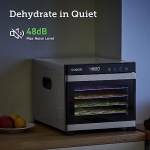 QUIET TO USE: With noise levels less than 48dB, simply press the Start button to dehydrate your food and go to sleep