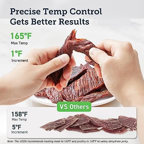 PRECISE TEMP & TIME: Use the digital control panel to set the timer for up to 48 hours. Dry foods at the exact temperature you want between 95-165°F, with accuracy down to the degree