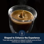 ENHANCED DRINKING EXPERIENCE. These tulip-shaped DeLonghi glasses are designed to enhance the sensorial experience.