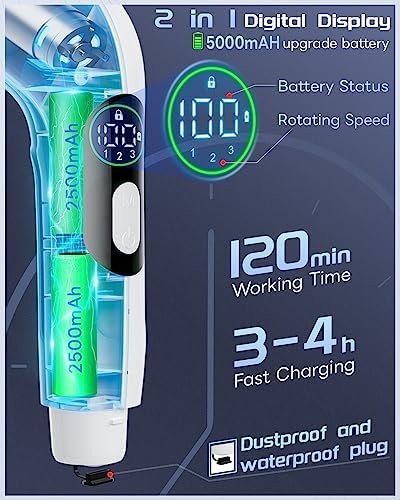 【Fast Charging, Strong Battery Life】Fader power scrubber can be quickly charged in only 3-4 hours, 5000 mAh upgraded battery, use time up to 120 minutes (2 hours), wireless use, no distance limit, satisfies your comprehensive needs.