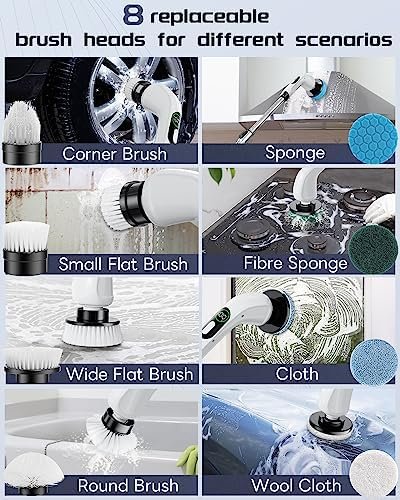 Electric Spin Scrubber, 2023 New Cordless Shower Scrubber with 8 Replaceable