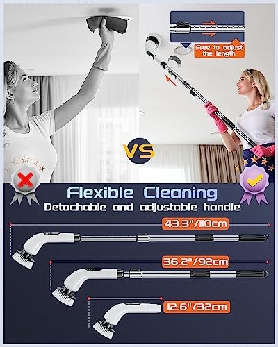 【IPX7 Upgraded Waterproof, Easy to Clean】IPX7 waterproof function allows the bathroom electric scrubber to be cleaned in water for a short time without worrying about damage. Easily clean your bathroom, bathtubs, floors, sinks, and more.