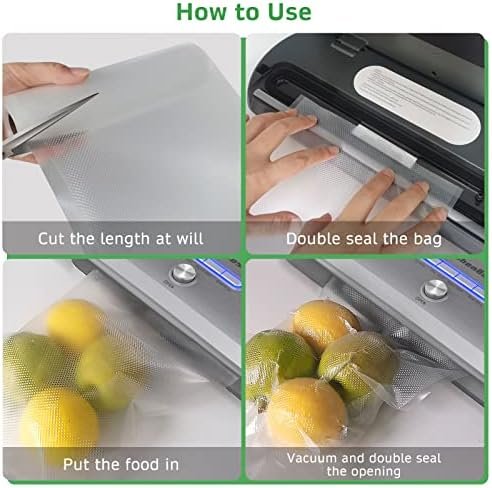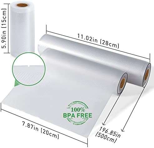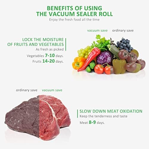 🥦Safe and durable: vacuum sealer bags rolls are manufactured in strict compliance with U.S. quality standards and made of BPA-free food-grade materials; 7-layer co-extruded film film is soft and tough, with good puncture resistance for safer use. Can be used for microwave, boiling and refrigeration. (Please make holes in the bag in advance when microwaving)