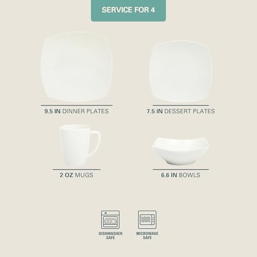 CLASSIC DESIGN: a classic white square shape dinnerware set with everyday elegance.