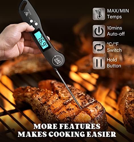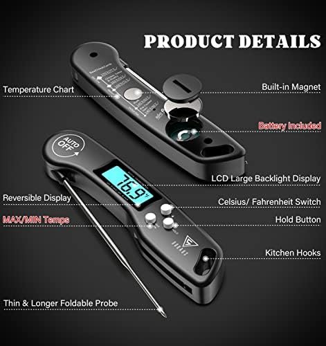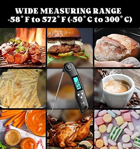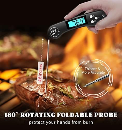 CLEAR AND REVERSIBLE DISPLAY: You will get the clarity temperature with the bright and large LCD screen, also you can read the meat temperature in the dark while grilling with backlit button! And the Exclusive auto-rotating display rotates automatically depending on how the instant read thermometer is held. (Note: Kitchen thermometer is not waterproof except for the stainless steel meat probe.)