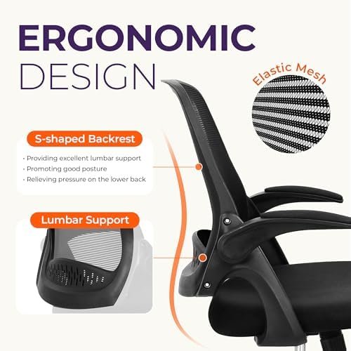 Strong Support – The breathable woven mesh promotes an ergonomic, upright posture while hugging your lower back. The padded cushion on the flip-up armrest enhances comfort.
