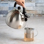 Add style and function to your kitchen with this attractive stovetop water kettle from Primula. Like classic whistling tea kettles, the Stewart emits a pleasant whistle to alert you that your water is boiling. The Stewart Whistling Kettle is sturdily designed and constructed, and sports a timeless design to suit any decor from traditional to modern. The spout opens easily with just a quick flip. The handle features a stay cool coating that protects your hand from the heat, and folds down for easy storage in tight spaces. The classic shape and brushed stainless steel finish make this kettle a gorgeous addition to your kitchen.