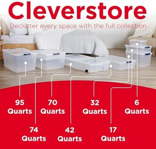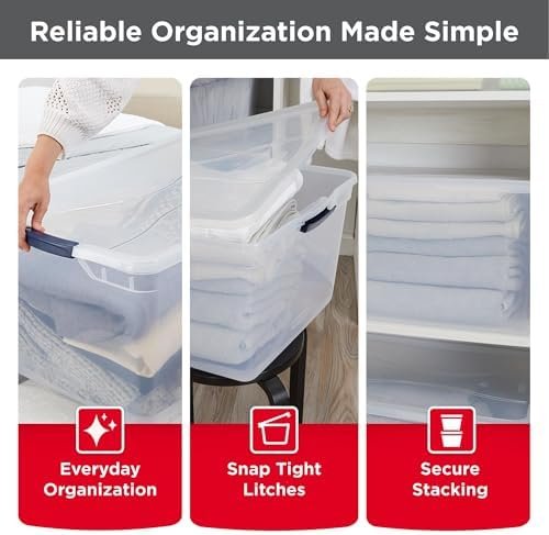 Rubbermaid Cleverstore 95 Qt Clear Storage Bins with Lids, 4-Pack, Stackable