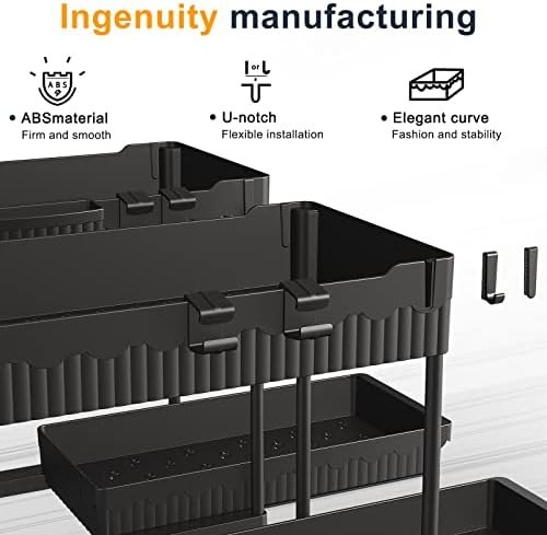 【Durable in Use】: The undersink organizers and storage is made of high-quality ABS material(thickness:3.5mm) and features a thickened support tube, The under sink organizer kitchen is made of high load-bearing and rust-resistant material,solid and stable,capable of supporting weights of up to 50 pounds.