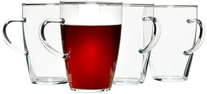 BOROSILICATE GLASS is heat and cold proof (up to 572° F and down to -40° F), so you do not need to worry about it cracking or exploding from your hot tea or coffee. Plus, this lab-grade glass has a high shock resistance. Microwave and dishwasher safe for added convenience. Made from cadmium and lead free recycled glass. Set includes four (4) 13.5-oz capacity glass coffee cups.