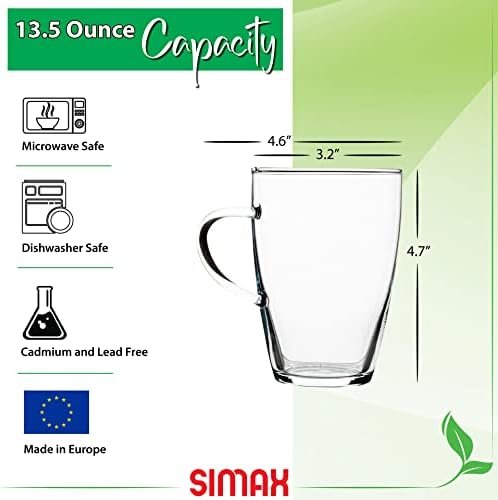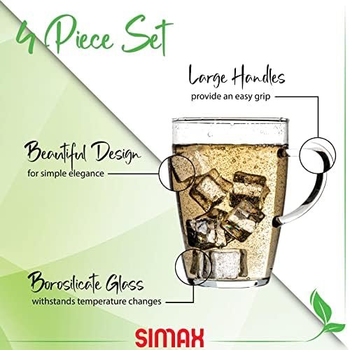 Simax Glass Coffee Mugs Set of 4 – 13.5 Oz Borosilicate Mugs for Hot Beverages