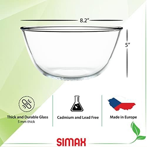 SIMAX Glass Mixing Bowl, 1.8 Quart Clear Glass, Modern, Contemporary