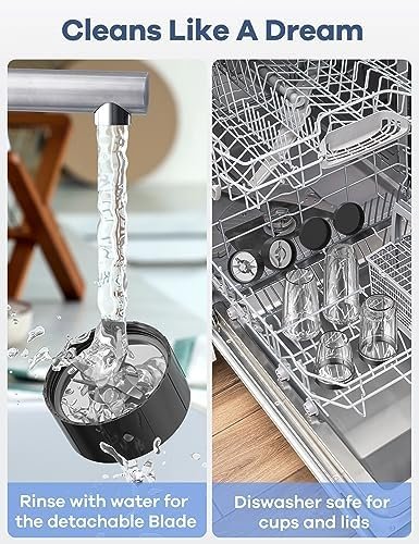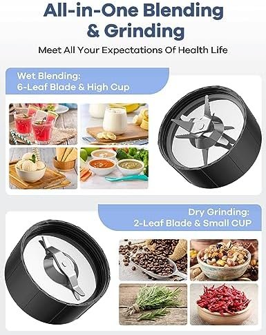 🔥【Detachable 304 Stainless Blades】The upgraded 6-leaf cross and 2-leaf flat blades allows the smoothie maker & grinder to blend and extract nutrients easily. Detachable blades are easy to clean. Cups and lids are dishwasher-safe.