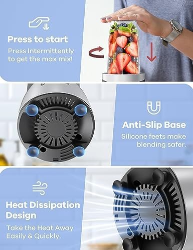 🔥【HEALTHY & SAFT & QUALITY ASSURANCE】Your safety is our top priority, Blender for smoothies only works when the blender cup is properly locked into the base. cooling fan on the bottom of the blender for quick heat dissipation. 4 Non-slip silicon pads can keep balance when the smoothies blender is working.