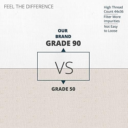 Durable And Reusable : Grade-90 cheese cloths for straining reusable quality that can resists wear and tear, heavier and more durable with a higher thread count. This one-time trial will save you from a lot and serve you for long