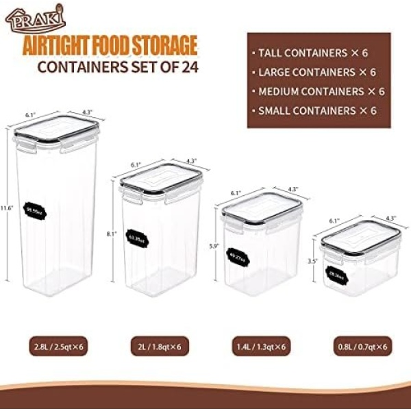 Airtight Food Storage Containers Set with Lids, 24 PCS Clear Kitchen Pantry