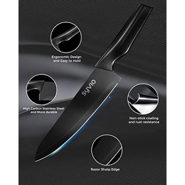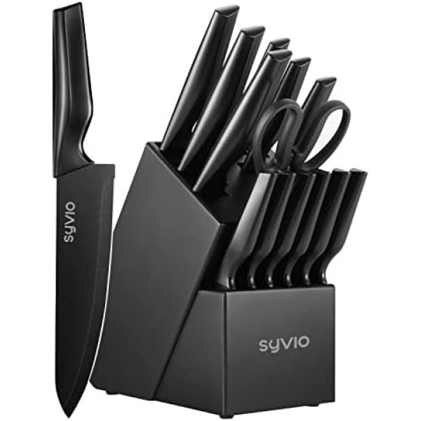 Knife Set, syvio 14 Pieces Kitchen Knife Set with Block, Knife Block Set